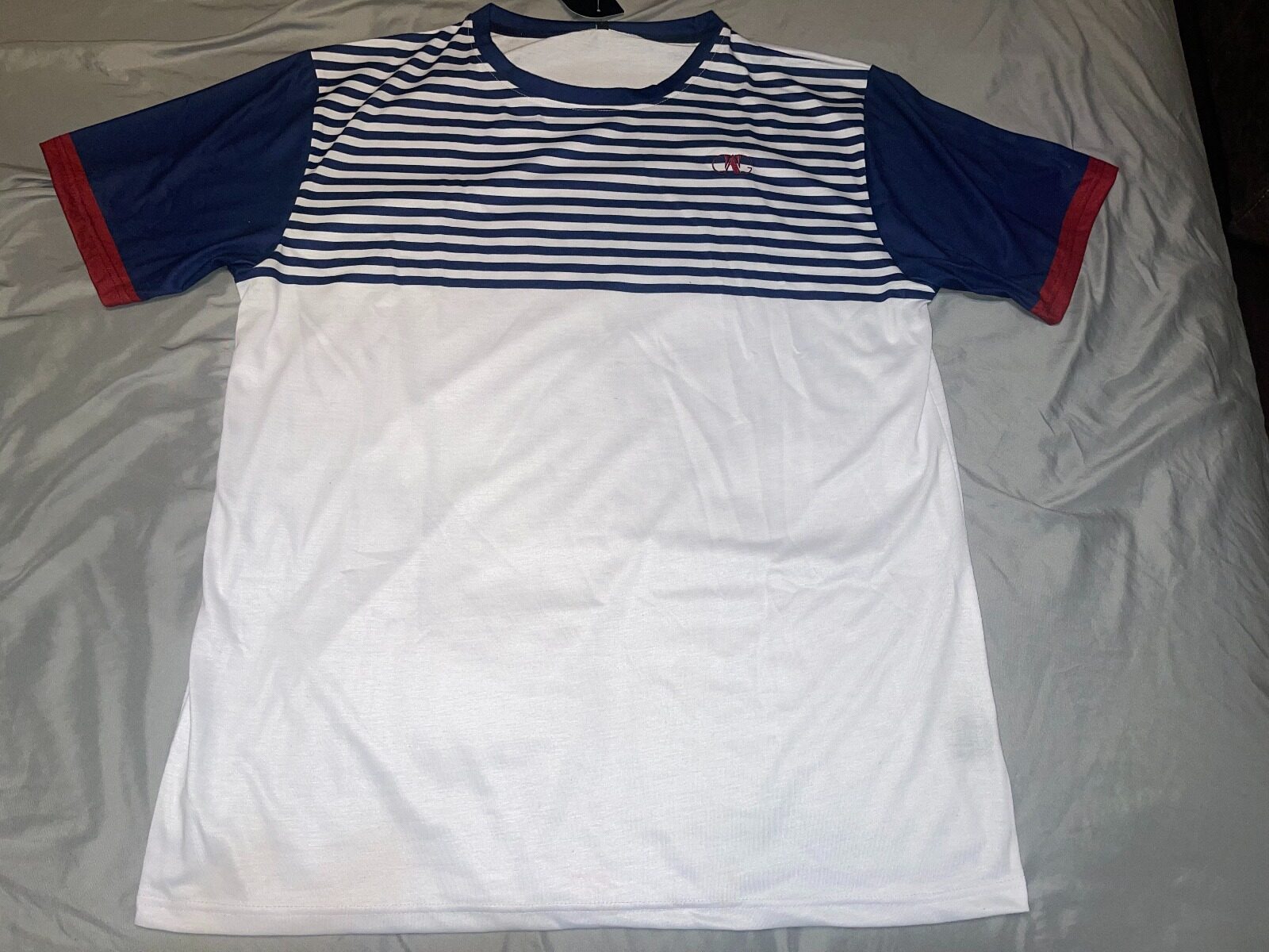 Embrace timeless style with this nautical-inspired tee. Inspired by the iconic French sailor shirt, the crisp blue stripes on soft white cotton offer a touch of Parisian flair. Made from breathable fabric for all-day comfort, this tee pairs perfectly with anything from shorts to chinos. Available in a variety of sizes for a perfect fit.